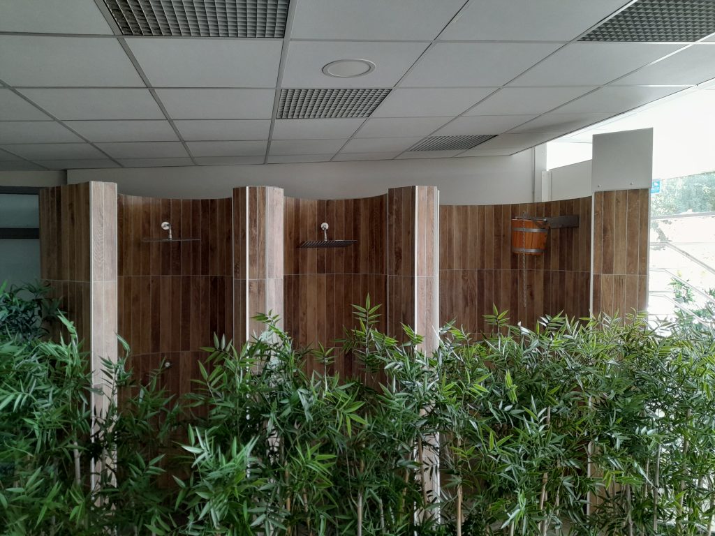 - Réaménagement du bien-être : travaux sur le carrelage des douches, installations de douche écossaises, réfection du hammam avec nouvel éclairage d’ambiance