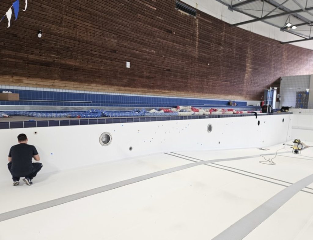- Reprise en peinture de la corniche au-dessus du bassin sportif