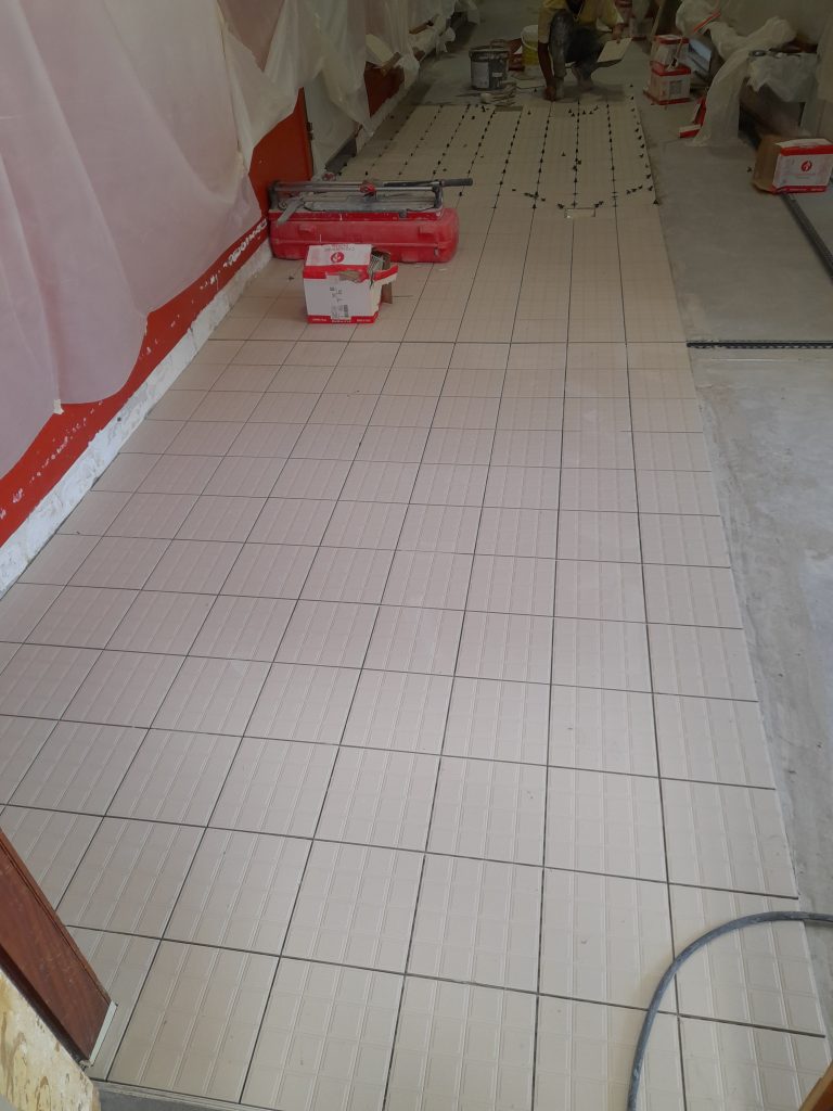 - Reprise du carrelage dans les vestiaires collectifs