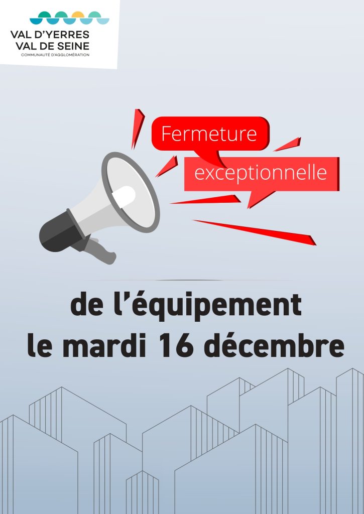 Mardi 16 décembre 2025, en raison d’une mobilisation interne exceptionnelle des agents de la Communauté d’agglomération Val d’Yerres Val de Seine, plusieurs équipements fermeront leurs portes au public pendant la journée. Un affichage est prévu sur l’ensemble des structures concernées.