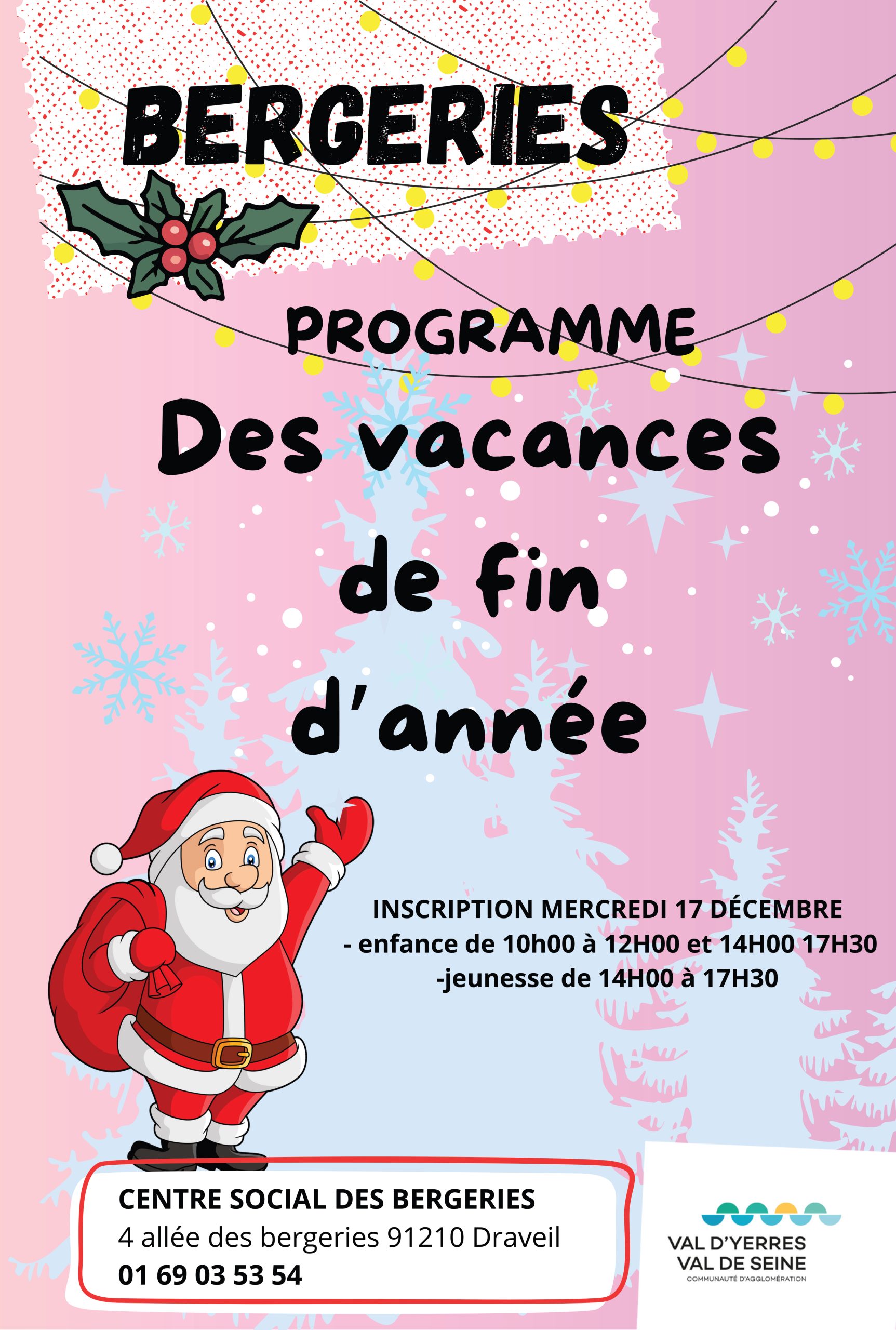 Les vacances de fin d’année approchent ! C’est le moment de profiter de la magie de Noël pour se détendre et s’amuser en participant aux nombreuses animations qui vous attendent dans nos centres sociaux et espace jeunesse !